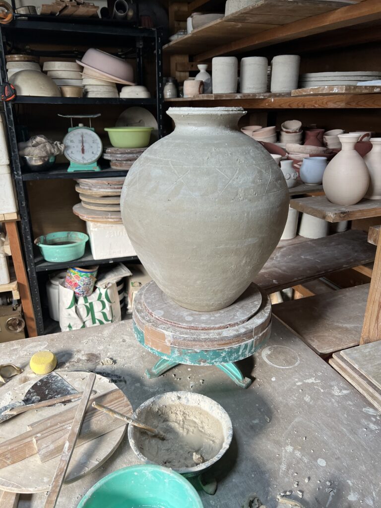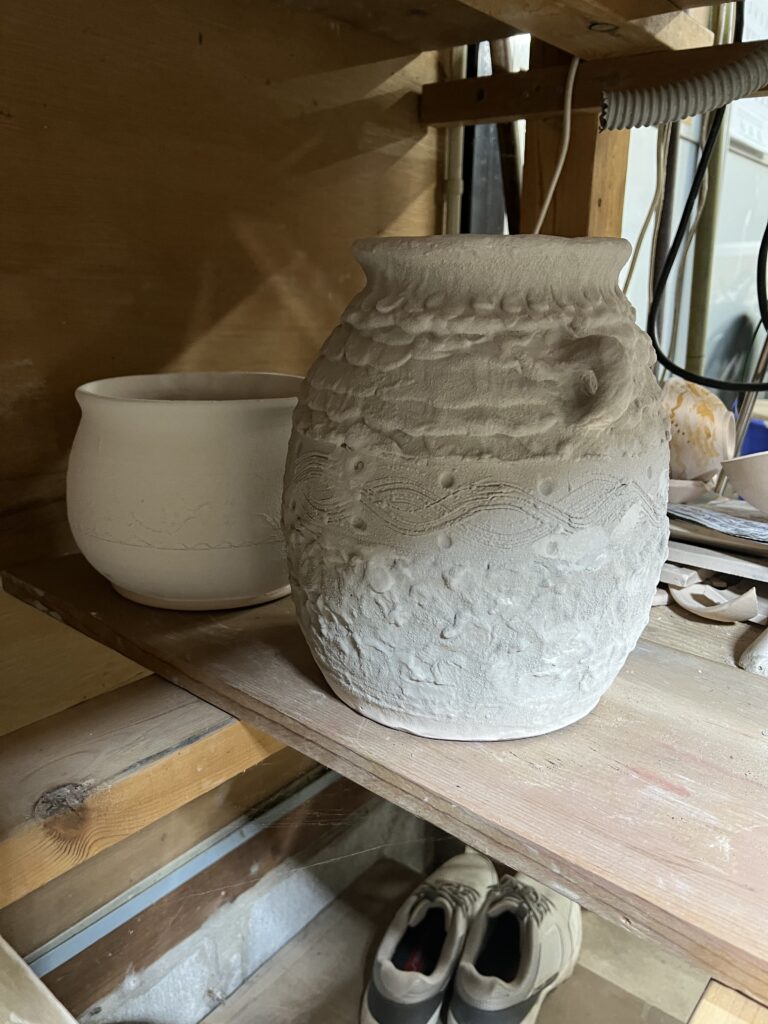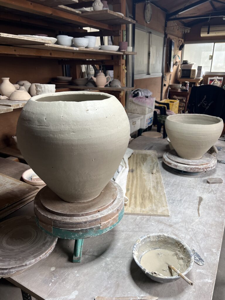 4月末から窖窯を焚く予定で準備しています。詳細期間の予定は大凡6日間ですが、窯の調子により伸びる可能性もあります。焼成するものは信楽黄瀬原土の作品が大半でありますが、志野土と唐津の作品も入れる予定です。作品の制作は3月半ばから始まり、昨日終了しました。信楽黄瀬原土を使ったものは石だらけの土で非常に作りづらく殆どは手捻りで作ります。電動轆轤用の土にするには大まかにこの石を取り除いたものを使います。粘性がないので大きな壺などは積み上げて乾かし又積み上げますので大凡1週間かかります。この度は陶芸教室の生徒が焼成を手伝ってくれる予定ですので何とか焼成出来そうです。その為の準備作業も大変ですが本日より窯の整備作業に入り、今週末ごろから窯詰め作業に入る予定です。大凡窯詰めは3日間を予定しています。窯焚きに入りましたら又お知らせ致します。