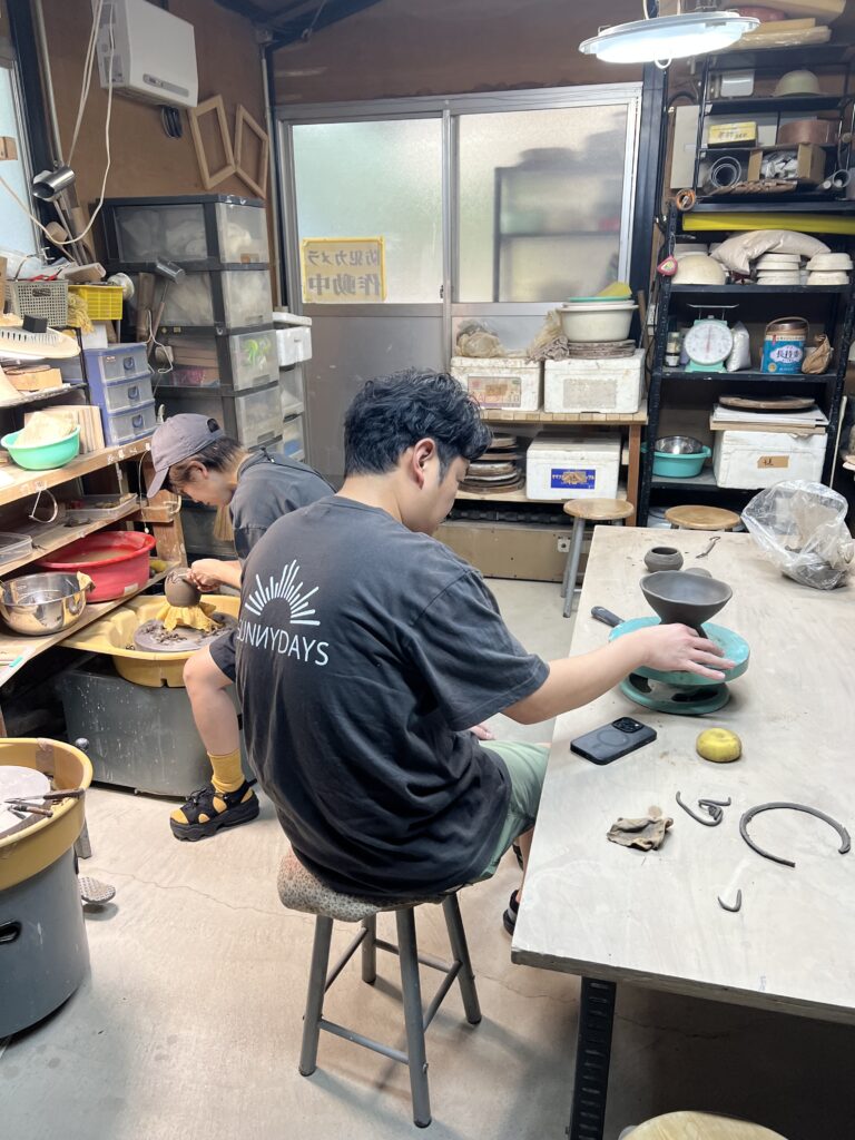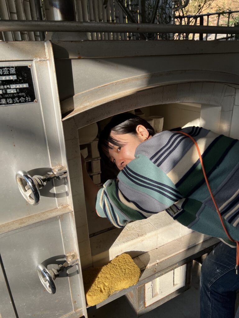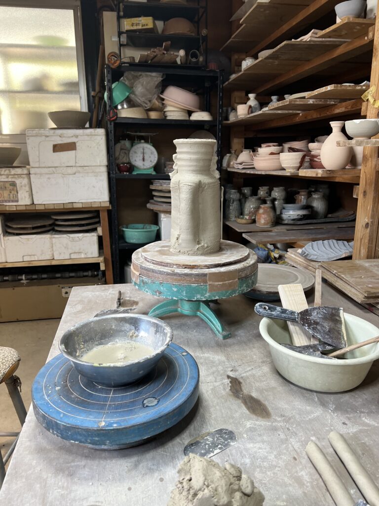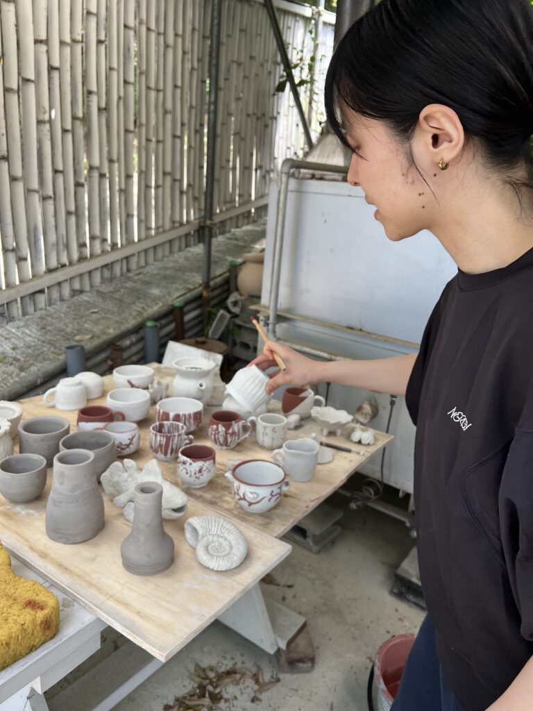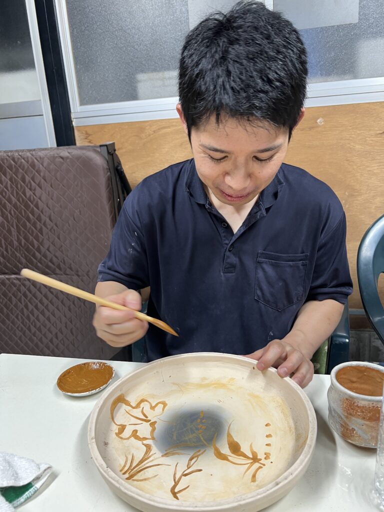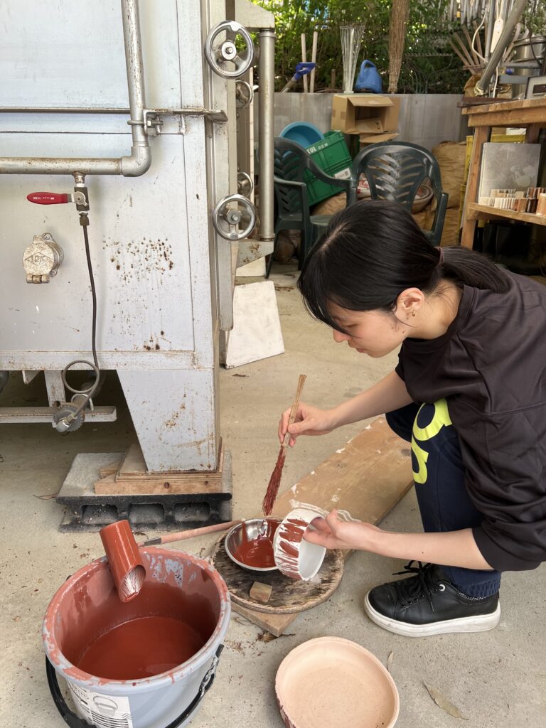志野作品の施釉の様子