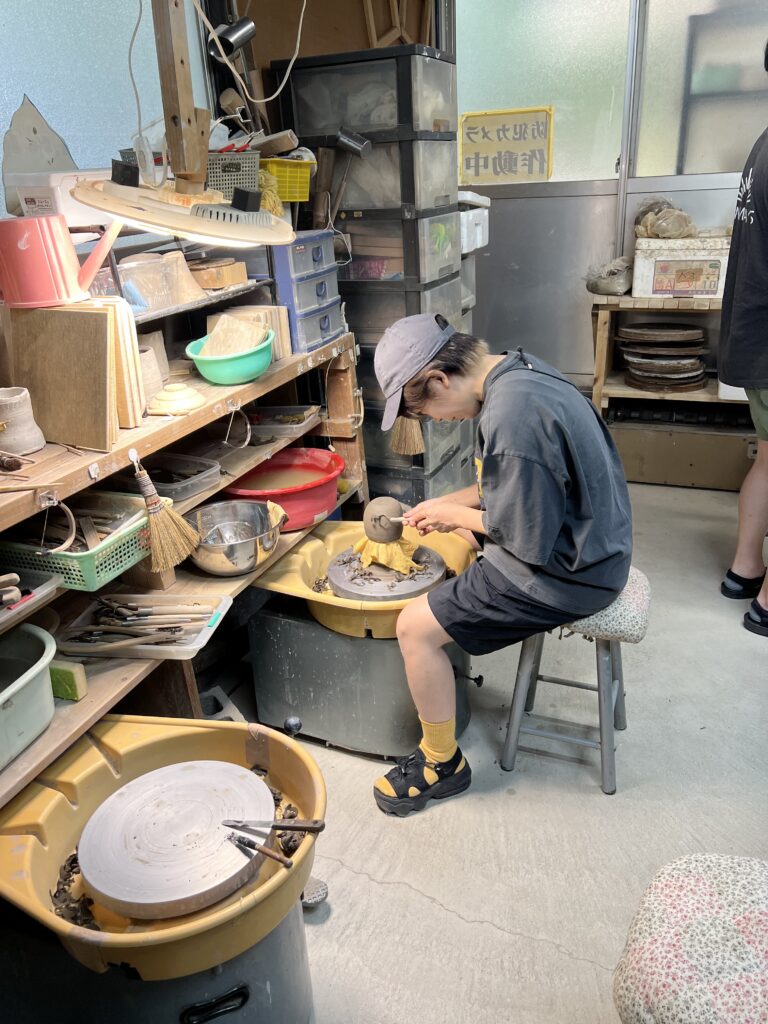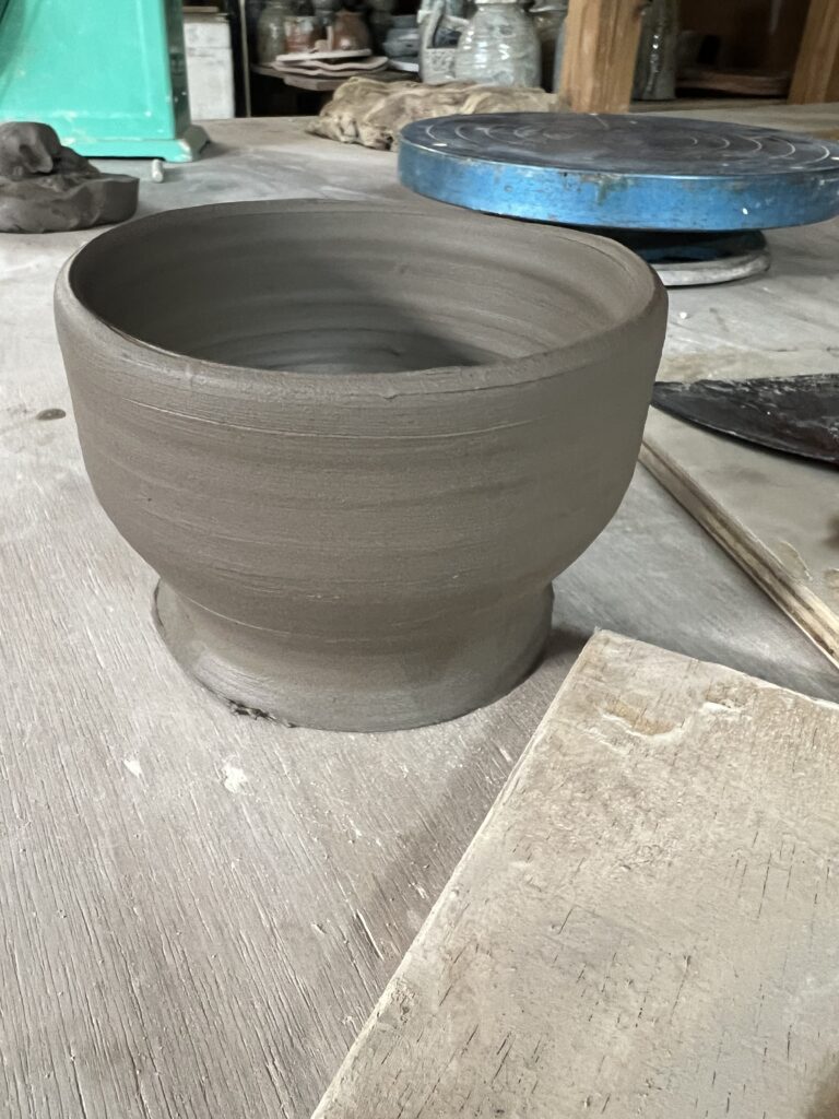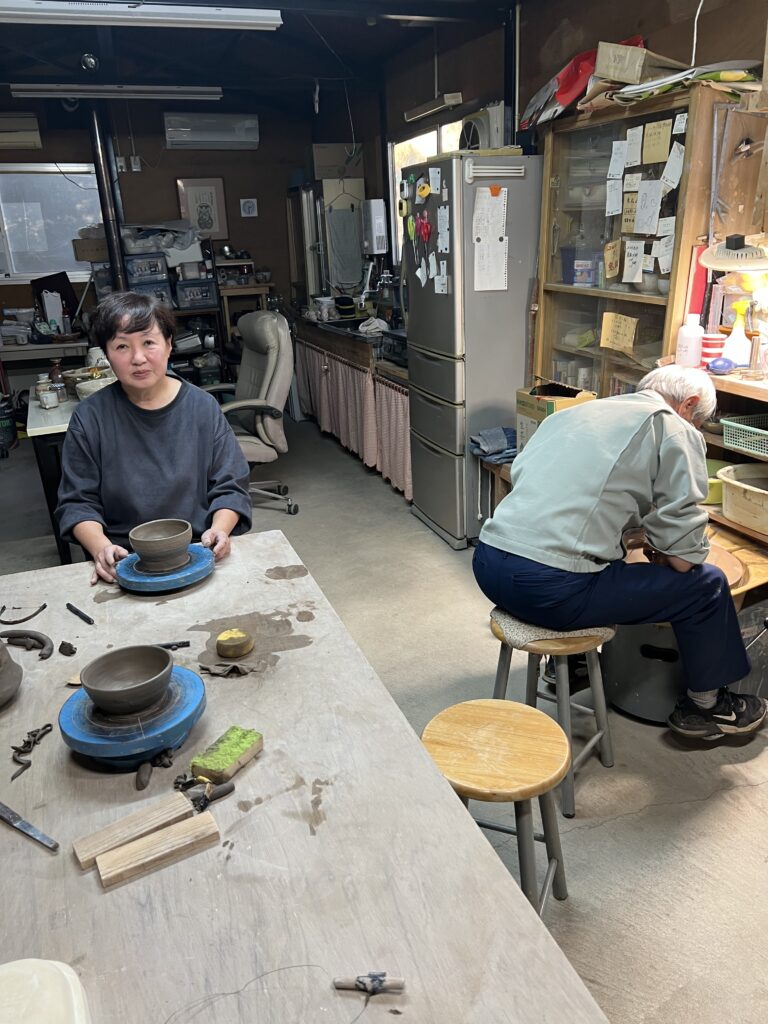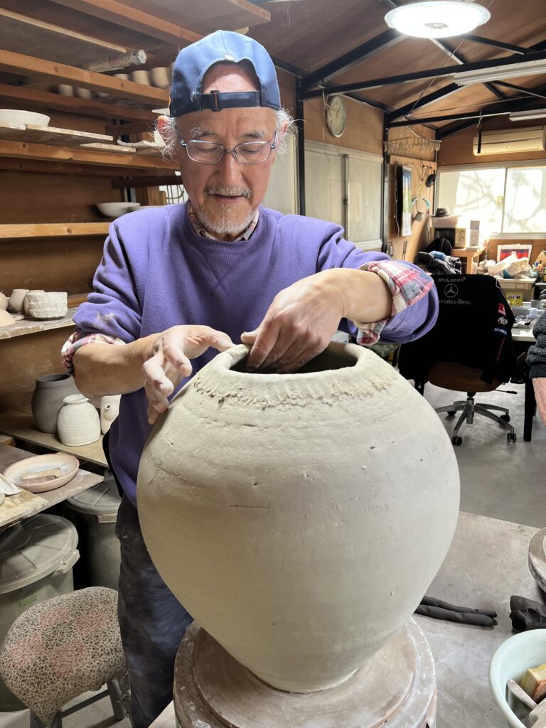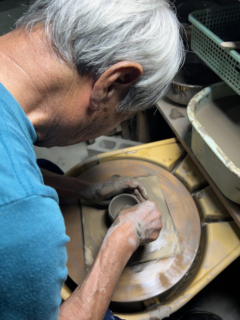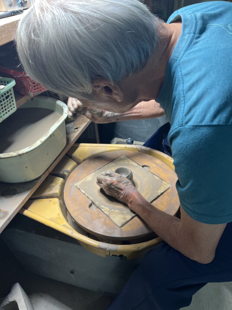 本日は陶芸教室の会員で歳は80歳、左手小指から人差し指に障害が有りながらも真摯に轆轤に向かい努力して、今では非常に上手く挽くことができる様になりました。今年の春には若い会員たちと共に穴窯焼成にも挑戦して、窯焚きを経験しました。その取り組みに敬服しております。これからも永く陶芸を楽しんで頂きたいものです。