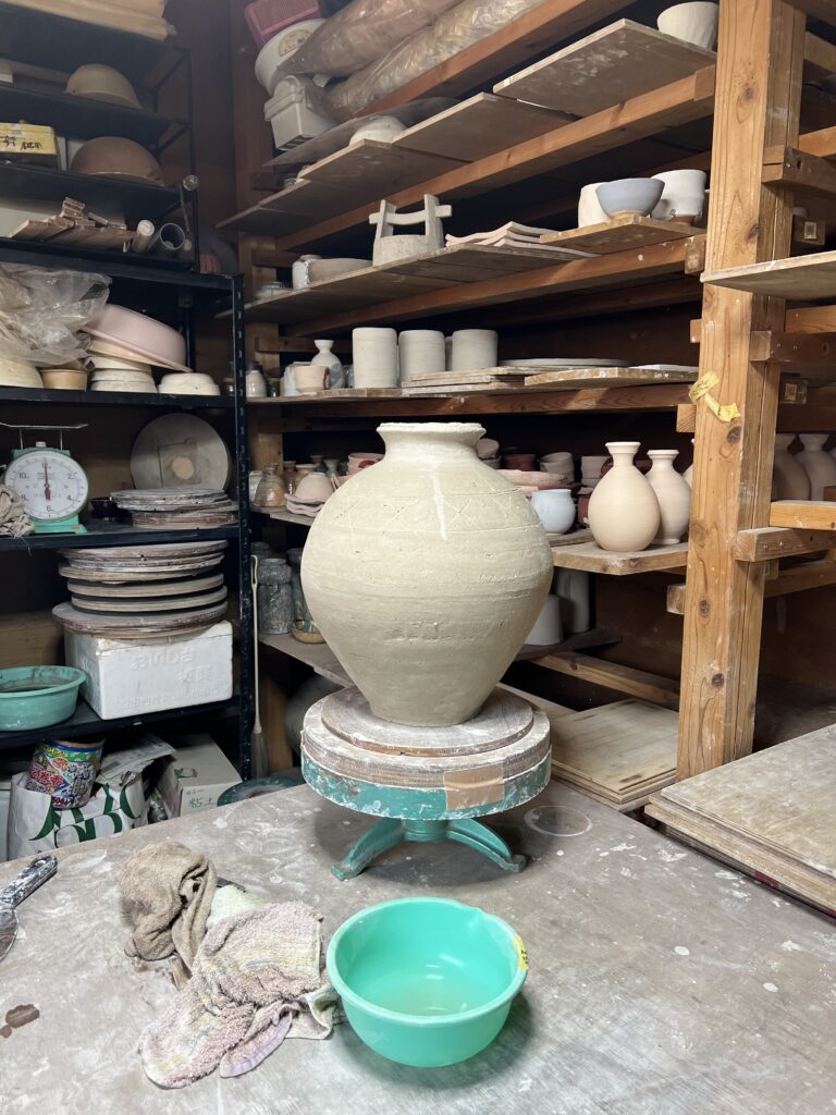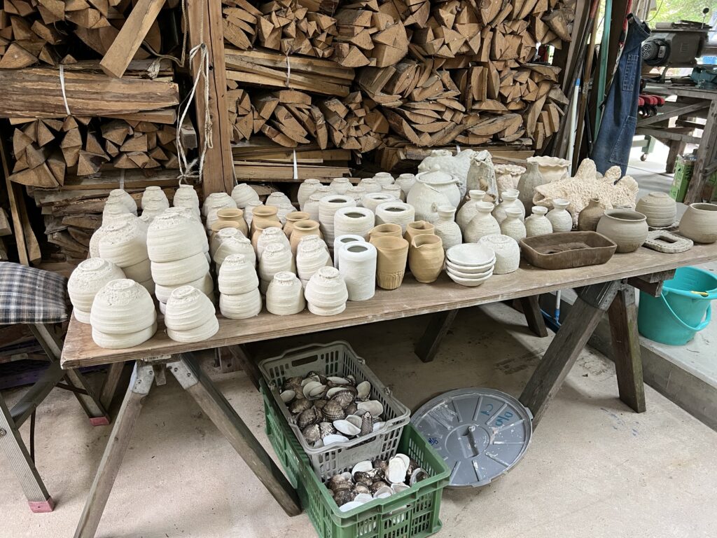4人ほど参加予定です。これだけの日数がかかる窯焚きをやりたいと言う意欲に感心しております。先ずは作品作りです。窖窯の作品は信楽土が中心で、電動は使えず、手捻りで大きな壺も作ります。又写真の中にはガス窯の窯詰めも同時進行しております。窖窯焚きが始まったら日毎に報告致します。映像も見て頂きたいと思っております。準備しておきます。