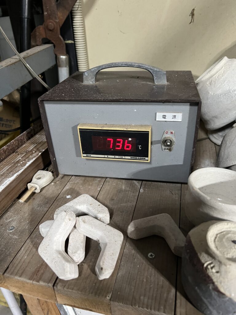 本日午前10時に火入れして現在まで大凡9時間、温度は736度、焼き上がるまでは明日朝7時ごろになる予定ですが、温度の上がり具合で延長する可能性があります。又最近の陶芸教室の活動は本日の窯焚きは教室の生徒が実習しております。今回のこの窯に入れた作品は絵付けをしたものが多く、その為の絵付け作業が多くなりました。勿論生徒によっては電動轆轤の練習を真剣に行っている人も毎回おります。写真はガス窯焚きの実習風景と絵付け活動のものと作陶風景です。又今回は5月の穴窯焚きで出た松灰を使って松灰釉2種類、や木灰釉薬、黄瀬戸釉など多くの自作の釉薬を使った作品が多く入っています。どの様に焼き上がるか楽しみです。今日は生徒と二人で窯焚きを徹夜でたのしんでいます。