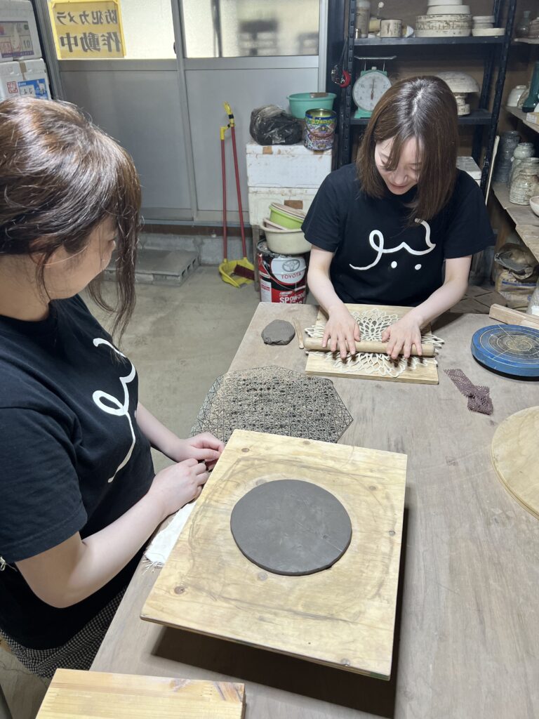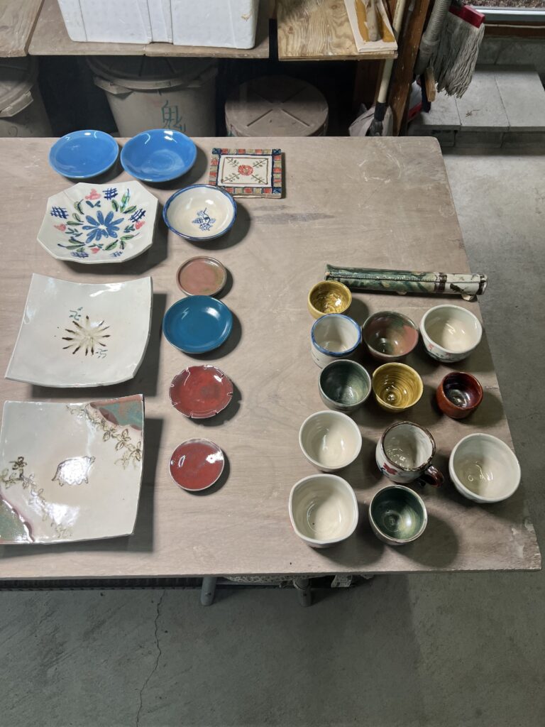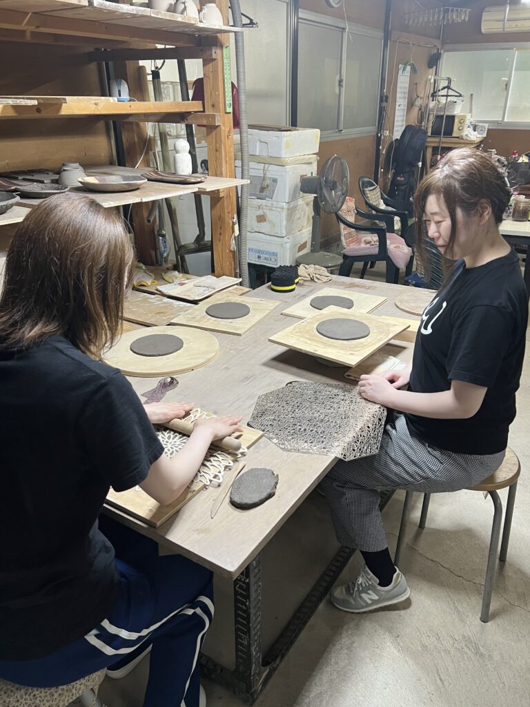 昨日は京都から若い女性達が会員のお姉さんに連れられて1日体験教室に参加しました。其々個性のある中皿を2枚づつ作り、楽しんでお帰りになりました。