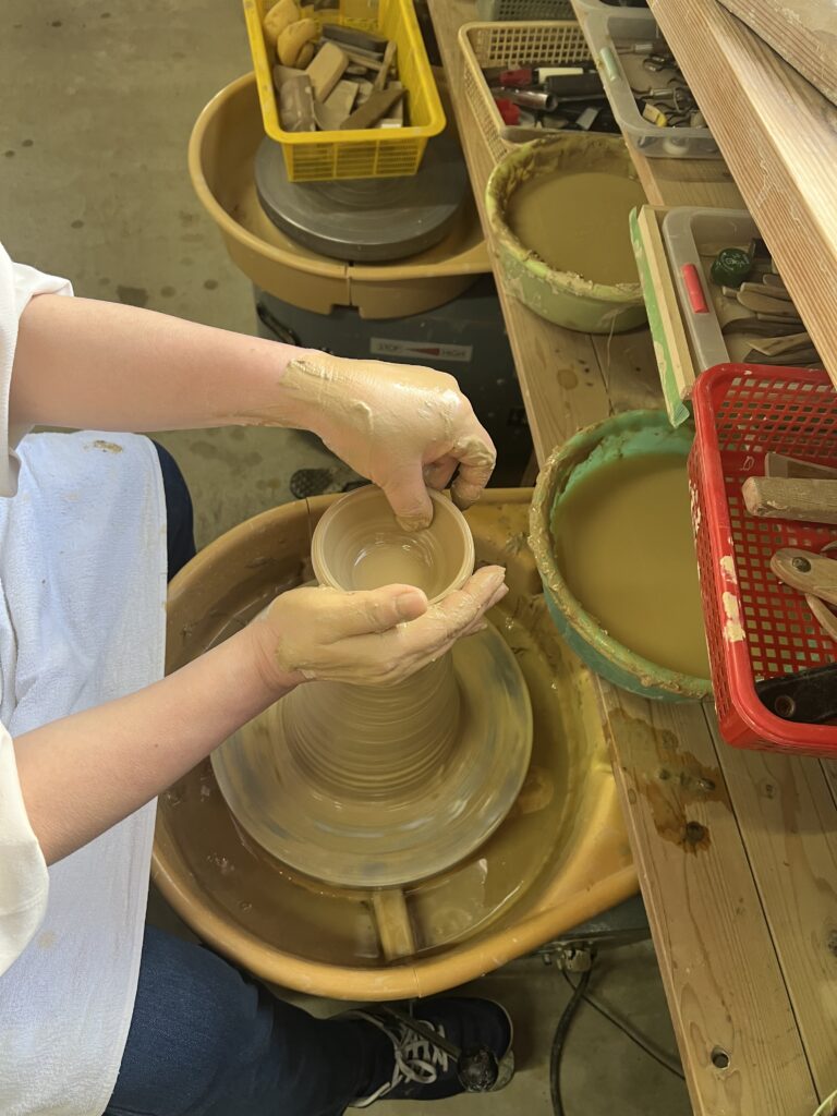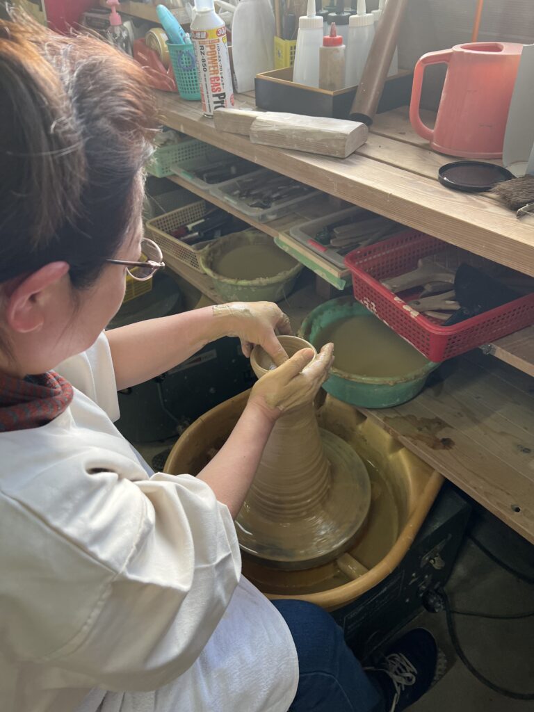 電動轆轤の練習をはじめて3回目、よく中心が取れてきて杯挽きが出来るようになって来ました。非常に陶芸に対して真摯な姿勢で臨み素直な気持ちで指導を受け入れる為、上達が早いように思います。次回には殆ど始動しなくとも自力で小さな器なら挽けるようになると思います。私の初心者の時の事を思い出してしまいました。兎に角真剣に学ぶ姿勢に敬服致しました。