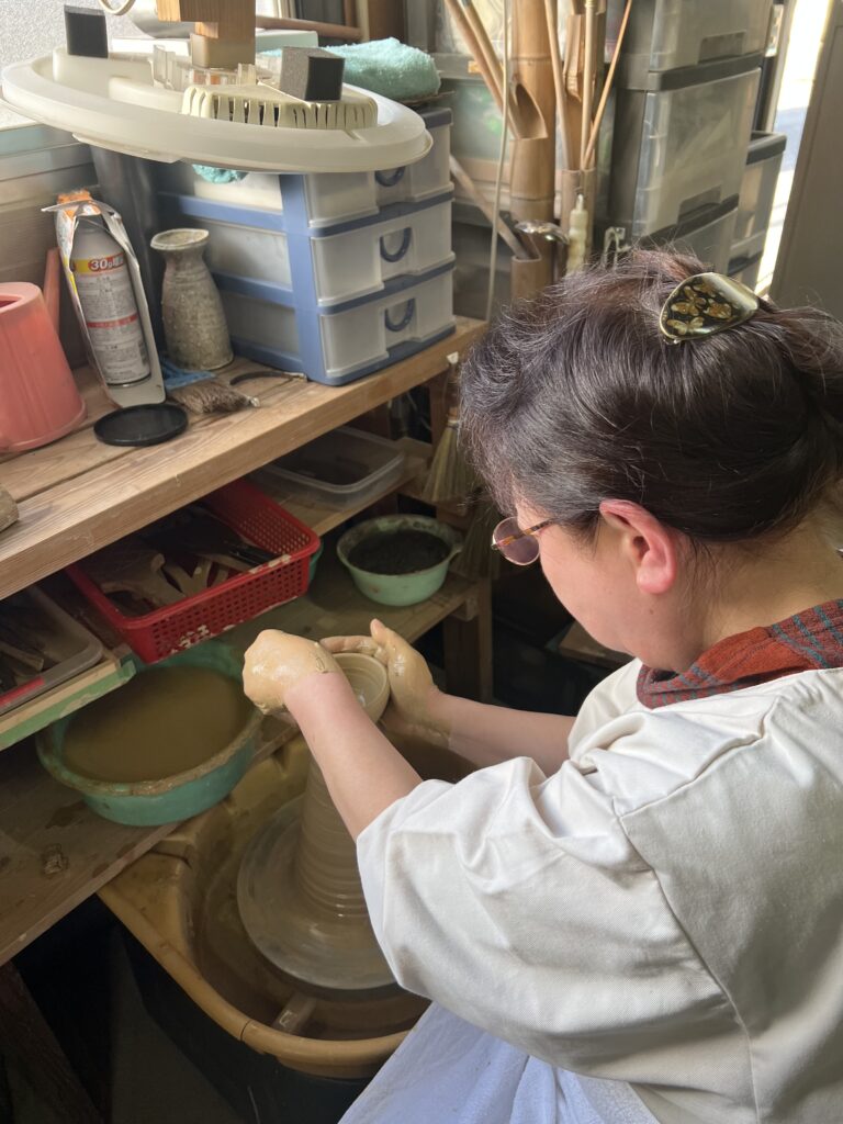 久しぶりの更新です。昨日は行われた日曜日コースの活動状況です。教室生徒の電動轆轤の練習風景です。この度で4回目になりますが、菊練り、土ゴロシ、中心を取る、そして湯呑み程度が作れる様になりました。非常に憶えが早くもう暫くしたら思う様な作品を作る事ができる様になると思います。ある程度作れる様になったら大皿や袋物(徳利)などにも挑戦して欲しいものです。