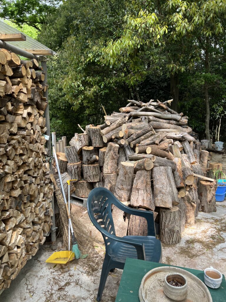 最近山の木を伐採した植木屋さんの紹介で、薪の材料を何度も軽トラで運び、この冬の為に薪割りをしています。山の中の薪の材料を適度にチェンソーで切り山から下ろすのが一苦労ですが吉見の山や窯場の雰囲気も緑に覆われて清々しい毎日を過ごしています。ご興味のある方は是非お尋ね下さい。