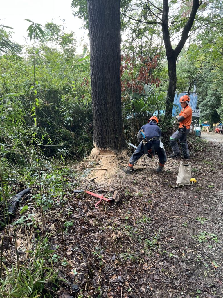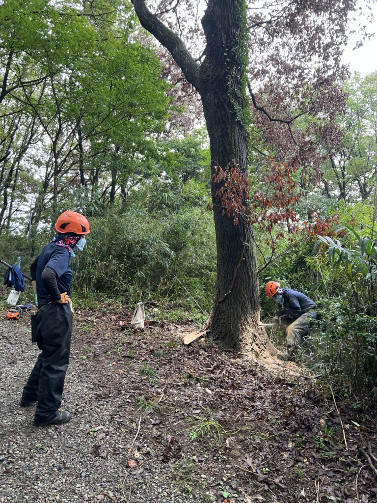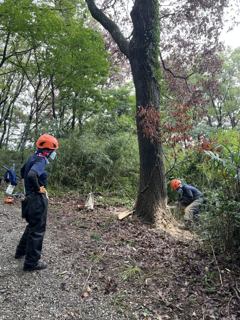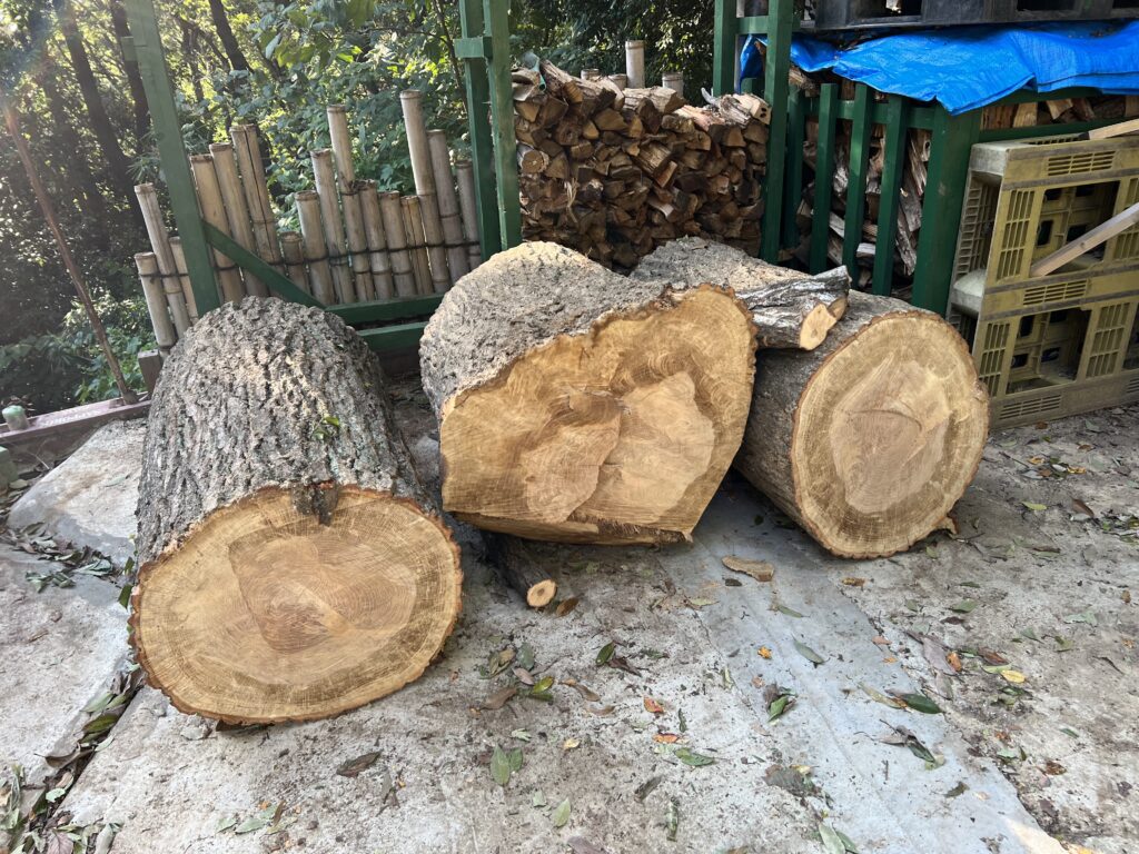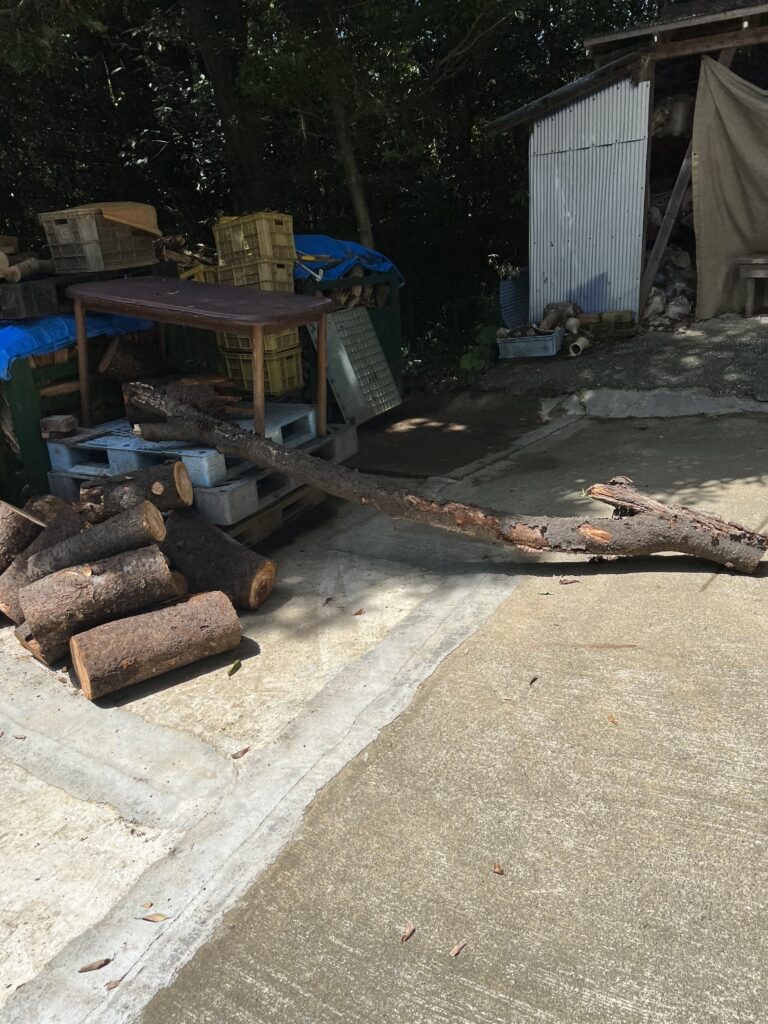 一昨日、昨日と窯場の入り口の大きな櫟木がナラ枯れ病で枯れてしまい腐って倒れないぬうちに町役場に連絡して持ち主に連絡してもらい伐採することになりました。伐採に来た地元の造園屋さんの職人達3人のうち2名が女性あった。根本から切っている姿から女性である事がわかっていたが、顔をサングラスやマスクで覆っていたのでよくわからなかったが、女性ながら直径90センチある大木を倒すのは凄いなと思いつつ見学していました。暫くしての休憩時間に私の陶房でお茶を出した時、またも顔を見てびっくり。歳は20歳と24歳の可愛い子達あった。聞いて見ると林業の専門学校を卒業してこの職場に来たと言う事でした。伐採した木は造園屋さんの社長の許可を得てもらうことにしました。此れからあまりにも大きな木なので気が遠くなってしまいますが、なんとか来年用のストーブの薪にする為処理します。