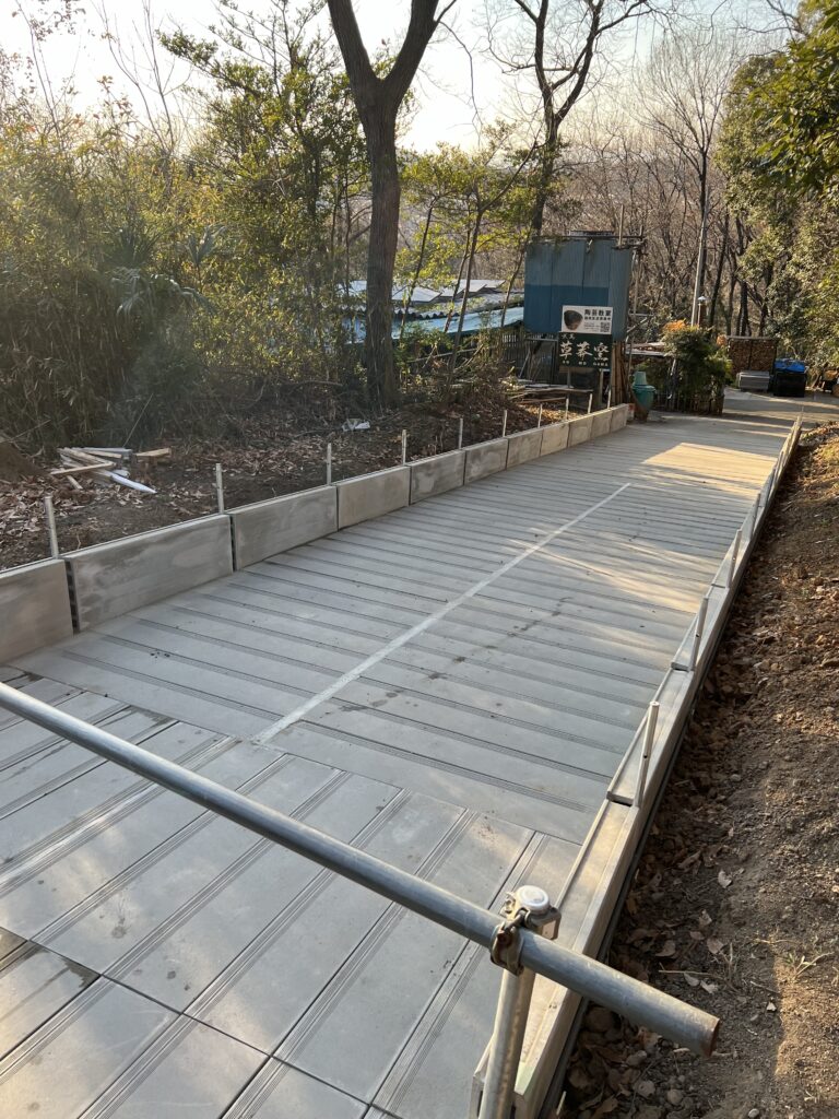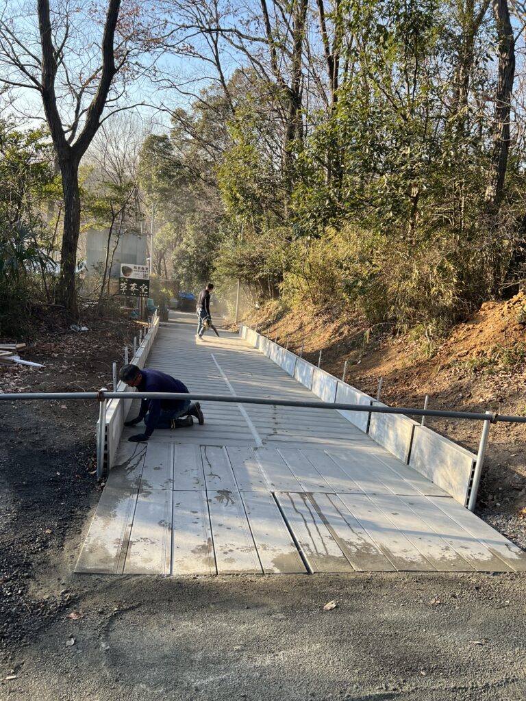 窯場の入り口が急な砂利坂道となっていましたので車が空回りし易い為、坂道をショベルカーで削り、砂利を引き直し、その上にコンクリートの板で舗装しました。出入りが楽になりました。