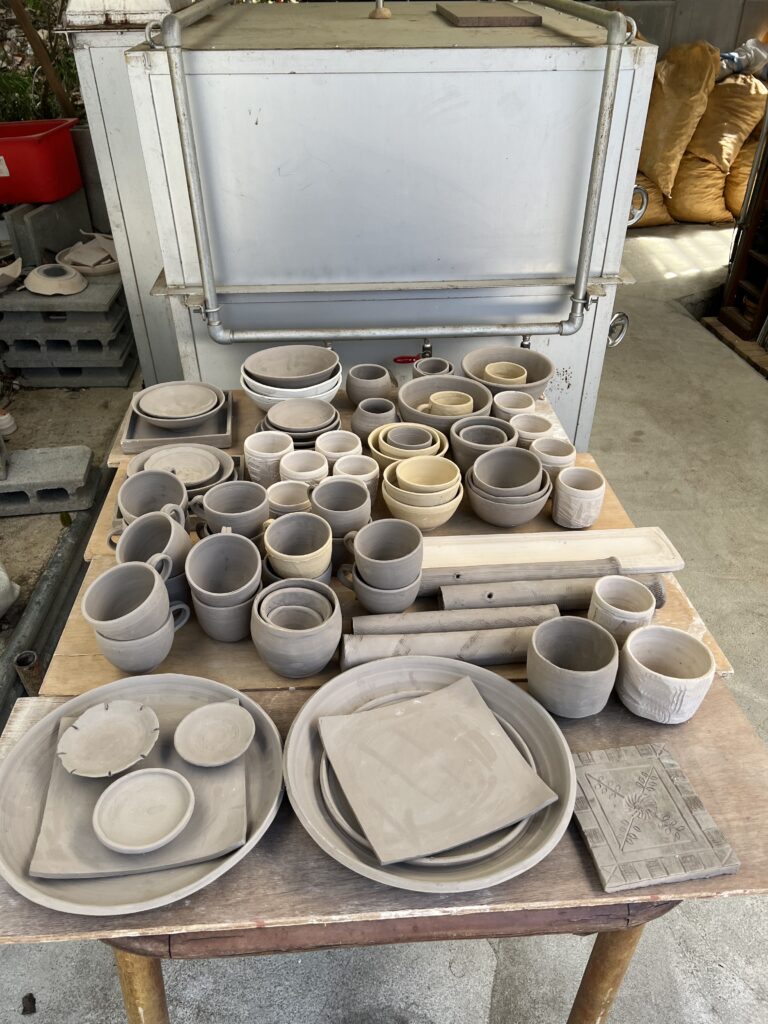 今までに陶芸教室の生徒が成形した作品の窯詰め作業をしました。未だ乾燥しきれない作品がありますので、今週末か、来週初めに窯詰めは終了して素焼きをやります。素焼きが終わったら釉薬を施し、本焼きです。数人の生徒は電動轆轤を使って整形できる様になりましたのでこれからが楽しみです‼️